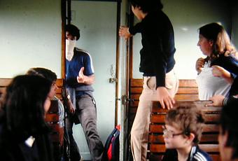 El joven foragido cubrió la parte inferior de la cara con un pañuelo. Después abrió de una patada la puerta del vagón de viajeros. Los pasajeros alzaron la vista asombrados: