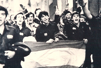 Esta fotografía proviene de un libro titulado "Falange", que ha sido editado por la Esfera de los Libros. Nuestro querido expresidente ha obligado a que se retire de su venta (da igual, casi toda la primera edición se ha vendido ya), pues aparece él ( muy vociferante y en prietas las filas), mediante la presentación de una demanda; aún cuando la fotografía fue tomada en su día por la Agencia EFE, y es a ella a quien pertenecen sus derechos. En la segunda edición que está próxima a salir, esa fotografía ha sido retirada.