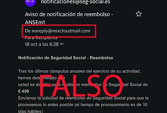 En los últimos días nos han llegado numerosos avisos a través de nuestros usuarios, de que han recibido supuestos emails del Instituto Nacional de la Seguridad Social (INSS), indicándoles que entren en un enlace para obtener un supuesto rembolso.