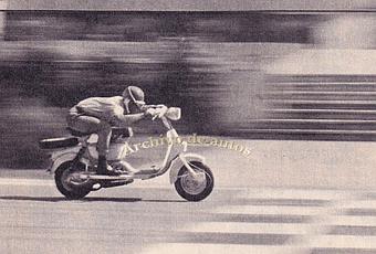 La velocidad máxima promedio alcanzada, con el piloto apilado sobre la motoneta, como se ve en la primera fotografía de esta nota, fue de 104 kilómetros por hora. Fueron varias pasadas en ambos sentidos en el Autódromo Municipal. La aceleración de 0 a 100 metros era de 7 segundos dos quintos. De 0 a 500 metros era de 26 segundos y un quinto, en los 5 metros finales se alcanzaban los 100 kilómetros por hora.