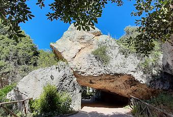 Nos adentramos en la Oreja de Dionisios, una enorme cueva artificial de caliza traída de una vieja cantera y que mide 23 metros de alto por 65 metros de largo y tenía una forma curva.