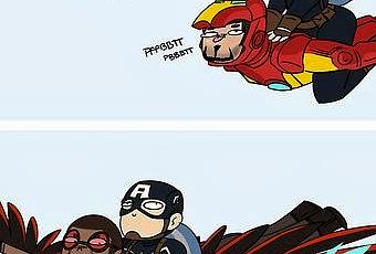 El otro día estuve viendo El soldado de Invierno y en inicio de la película es...harto curioso.No niego que tiene cierta gracia,pero es muy curioso como se empieza a plantear el inicio de la amistad entre Falcon(Su historia en la peli en bastante diferente a la de los cómics,por lo que he leído aunque tiene puntos en común,claro) y el Capitán América.Y al ver esta imagen me he reído bastante.