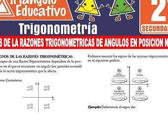 Muestra de la Ficha de Signos de la Razones Trigonométricas de Ángulos en Posición Normal