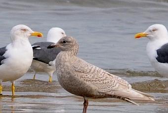 Yo por mi parte estuve por la tarde en la ensenada de Aramar, donde comprobé que seguían no sólo uno, sino dos ejemplares de charrán patinegro Sterna sandvicensis. El ejemplar nuevo es un precioso adulto, con la mancha amarilla del pico bien visible y las partes superiores grises. El capirote en la cabeza aún no está presente.