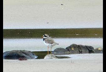Chorlitejo grande Charadrius hiaticulaEn el chorlitejo grande, al igual que en otras especies como el correlimos común, se produce un cambio de poblaciones. Si hasta ahora migraban las aves procedentes de Islandia y Groenlandia, ahora van apareciendo aves procedentes de Escandinavia y Siberia, que viajan con rumbo SO. Además, y como novedad este otoño, un pequeño bando de 7 chorlitos dorados Pluvialis aricaria.