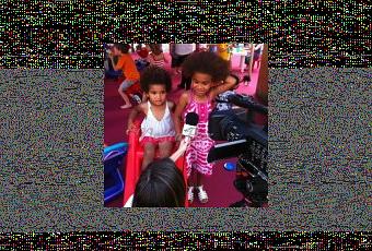 Se han puesto a jugar con todo lo que había por allí: marionetas, cochecitos, cocinitas, toboganes, etc. Y, de repente, aparece una reportera de la televisión local, cámara y micro en ristre. Se me acerca y me pregunta si le puedo responder algunas preguntas. Y yo, como no sé decir que no, he acepado. Me ha estado preguntando cómo valoro el servicio de Ludoplaça, ha filmado a las niñas jugando… ¡y las ha entrevistado!