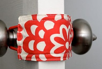 Hoy comenzamos con una idea muy práctica para todas las mamas, sobre todo para las que tenéis bebes, porque estoy segura que muchas de vosotras, a pesar del cansancio por acomodaros a un nuevo ritmo de tiempos, la emoción y el sentido de protección maternal hace que vayáis y vengáis a menudo al dormitorio de vuestro bebe, eso sí con sumo sigilo no se vaya a despertar…ecole cuá…ahí quería yo llegar. Como ves en la foto te ofrezco una idea para la puerta del dormitorio de tu bebe, un pequeño pedazo de tela con dos gomas en los extremos que evitaran que al entrar o salir hagas ruido…para no despertar al baby de la casa…