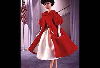 Esta muñeca Barbie lleva el pelo Bubble cut, el sombrero salió al mercado en honor a Jackie Kennedy, aunque la verdad es que el sombrero no se creó hasta el año 1962, el traje de 1960 no lo llevaba. Este conjunto lleva una falda en raso blanco y corpiño rojo con un cinturón dorado. Lleva un abrigo rojo forrado en raso de terciopelo rojo con sombrero a juego. Es un vestido que tal vez se creó para celebrar el día de san Valentín. También lleva un bolsito a juego.Año 1997 (Reproducción original de 1960).Collector Edition.
