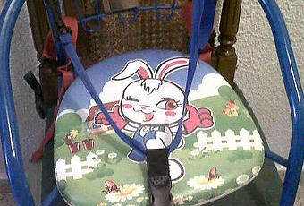 También necesitas unas correas para sujetar la sillita a tu silla grande para que este bien fijada, sirven todo tipo de cuerdas o cintas, como las que llevan las mochilas que acaban en enganches de color negro.