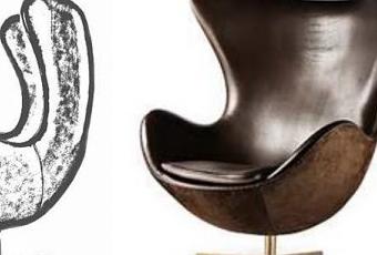 Tal vez el gancho de este asiento (en la imagen se muestra el boceto junto a uno de los ejemplares ya materializados) radica en su forma, que recuerda a un guante de béisbol o incluso a una gallina, ánade u otro ave, si nos fijamos en sus patas.