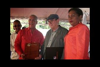 El cantautor Silvio Rodríguez fue reconocido esta tarde como huésped distinguido y recibió las llaves de la ciudad de Baní, de manos del alcalde Nelson Camilo Landestoy, en la apertura de la X Feria Regional del Libro y dentro de las actividades por el 250 aniversario de la fundación de este municipio.El artista cubano agradeció el gesto de la municipalidad banileja, señalando que “ojalá que esta llave que se me acaba de entregar quepa en uno de mis bolsillos para poder venir siempre a este pueblo que tuvo la gloria de dar luz a Máximo Gómez, uno de los hombres más importantes de América, responsable de la independencia del pueblo cubano”.