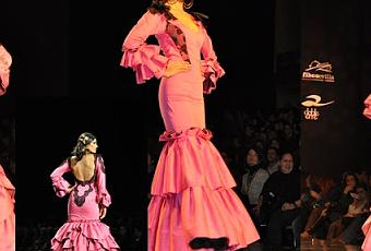 La tarde se abría con el desfile de Lina, que volvía a desfilar en SIMOF tras una ausencia que sin duda alguna se nota cuando hablamos de la firma de moda flamenca más conocida y tradicional de todos los tiempos. Una colección llena de tonalidades muy primaverales como el naranja, el rojo, el amarillo, sin dejar atrás el negro y el rosa fucsia que un año más aparece en las tendencias de moda flamenca. También es de destacar el abundante tejido floral que hemos podido ver en los diseños. Mucho cuello de barco, que he que decir que aunque para los trajes de flamenca siempre me ha gustado llevar un buen escote, este tipo de corte queda muy muy bonito y sobre todo elegante. Pero sin duda lo que más ha llamado la atención a muchas, incluida a mí aunque en los desfiles que se han podido ver de moda flamenca ya se intuía algo, es la desaparición de esa cantidad de volantes que crearon tendencia el pasado año. "Flamenco", que es como se llama esta colección, está llena de vestidos con apenas 2 o 3 volantes e incluso ninguno en muchos casos.