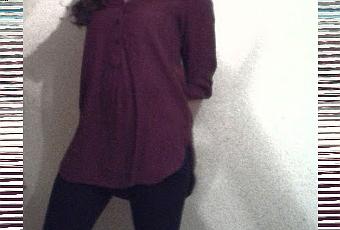 Como María ya ha comentado en otros post el color burdeos es uno de los colores de esta temporada, es ese socorrido color, junto al azul marino, que evita abusar demasiado del negro en invierno. En esta ocasión el look es muy sencillo, una camisola burdeos y unos legging negros. Es un look cómodo,y según con que se combine puede servir para muchas ocasiones.