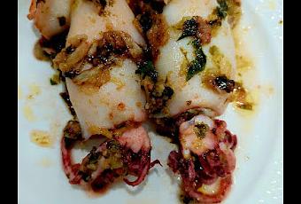 Sacamos los calamares, les echamos por encima el picadillo y listo.