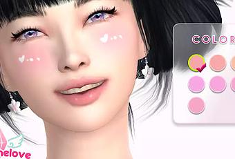 Mod CC: Rubor o colorete kawaii con forma de corazón estilo animé para Los Sims 4