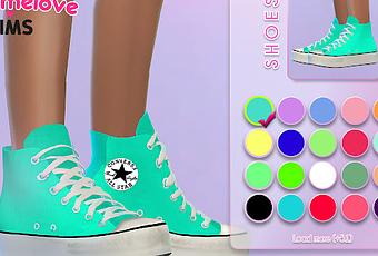 Como ya había dicho antes, haría esta versión para los pequeños del juego, así que ¡Hoy te traigo un nuevo mod o CC (Custom Content, por sus siglas en inglés) de unas zapatillas Converse estilo Chuck Taylor All Star de plataformas altas para niños de Los Sims 4! 😍
