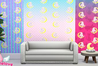 Mod CC: Papel tapiz con ilustraciones de Sailor Moon y fondos degradados para Los Sims 4