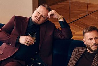 Schajris y García, que forman uno de los dúos más reconocidos de la música pop en español, especialmente por sus baladas, aparecen vestidos de negro y ambos con barba incipiente.