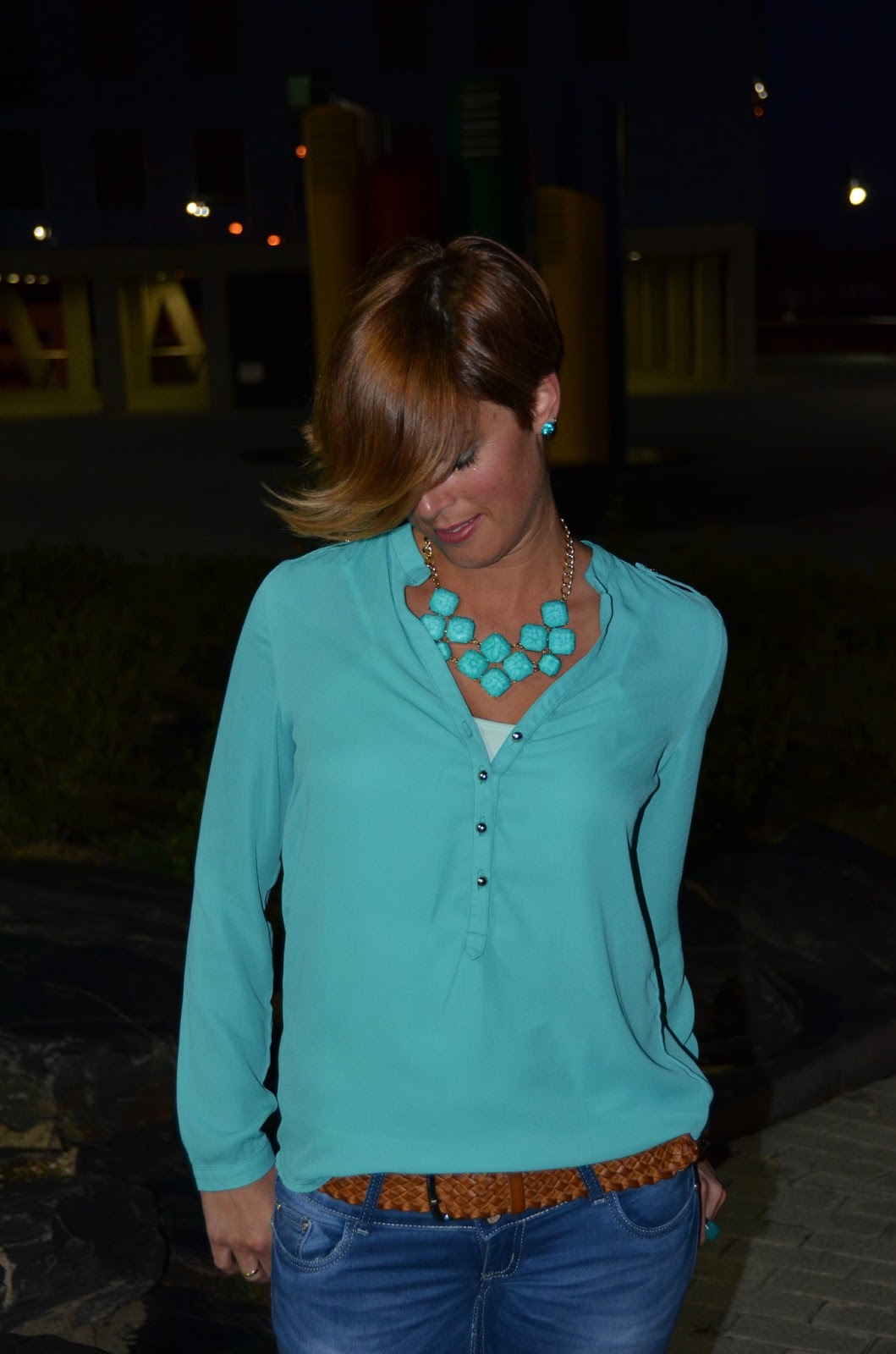 Para acompañar el look de ayer, este precioso collar de resina en tonos verdes de Blanco, ya se que no es de mis colecciones, pero cuando nos gusta tanto los complementos como en mi caso, nos ponemos todos los que nos combinen y nos enamoren..