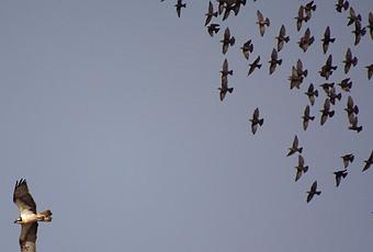 Águila pescadora perseguida por una bandada de estorninos. (Flickr.com)