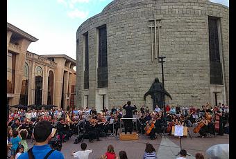 Excelente el trabajo del maestro Daniel S. Velasco con una selección orquestal que unida como sólo la música puede, recreó y compartió su trabajo con niños y viejos, aficionados y peatones... a pie de calle, en una plaza que debería llamarse "Plaza de la música" pues la gesta que conmemora debería borrarse del callejero junto con tantas referencias a un pasado cuya sombra planea de nuevo.