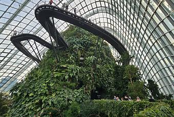 En cada nivel, entre los bloques de habitaciones, se alzan enormes jardines en forma de curvas, cubiertos de plantas tropicales y con franjas de frangipani y palmeras. La vegetación florece en todo el complejo y los árboles y jardines del hotel parecen fusionarse con los del parque adyacente como una extensión continua de parque urbano.