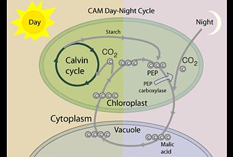 Las plantas CAM fijan carbono durante la noche mediante la apertura de sus estomas y con el apoyo extra de la carboxilasa de PEP.