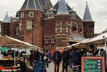 En esta entrada relato el final del cuarto día en Ámsterdam. Después de la visita guiada por el “Ajax Arena” nos trasladamos en metro hasta la “Estación Central”. Desde aquí caminamos hasta “Nieuwmarkt” (Mercado Nuevo). Una plaza del Barrio Chino colindante con el Barrio Rojo. Había instalado un mercado biológico y decidimos comer en uno de sus puestos.