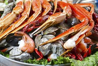 - Crustáceos que incluyen camarones, langostas, langostinos, erizos de mar y cangrejos.