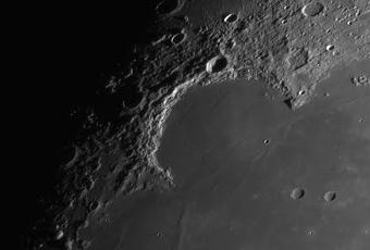 Hacia el sur amanece en los Mons Gruithuisen, unos importantes domos de origen volcánicos.