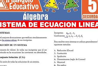 Aquí adquirirás GRATUITAMENTE el siguiente material sobre Sistema de Ecuación Lineal preparado especialmente para los estudiantes de Quinto de Secundaria. Este contenido se desarrolla en el curso de ALGEBRA y te lo compartiremos GRATIS en formato PDF.