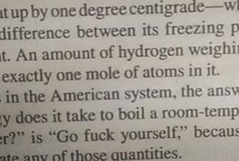 En el Sistema Anglosajón, la respuesta a ‘¿Cuánta energía es necesaria para llevar a ebullición un galón de agua a temperatura ambiente*?’ es ‘Vete a la mierda’, porque no hay manera de relacionar ninguna de esas cantidades“