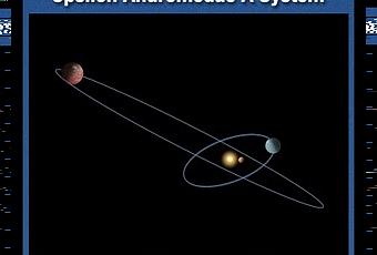 Desde hace poco más de una década, los astrónomos han sabido que tres planetas del tipo de Júpiter orbitan la estrella Upsilon Andromedae. Similar a nuestro Sol en sus propiedades, Upsilon Andromedae se encuentra a unos 44 años-luz de distancia. Es un poco más joven, más masiva y más brillante que el Sol.