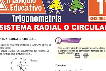 Aquí obtendrás GRATUITAMENTE el siguiente material sobre Sistema Radial o Circular preparado especialmente para los estudiantes de Primero de Secundaria. Este contenido se desarrolla en el curso de TRIGONOMETRÍA y te lo compartiremos GRATIS en formato PDF.