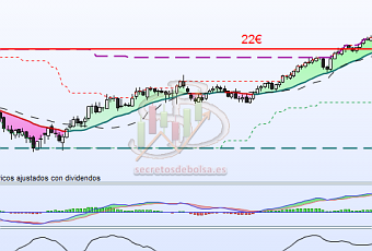 Es un valor que para el que esté invertido es una muy buena opción, pero ahora mismo el stop que habría que colocar para asegurar la operación sería demasiado elevado para nuestro sistema. Probablemente, debido a su separación de la mm de 30 sesiones le corresponda no dentro de mucho un recorte que a lo mejor nos facilite esa oportunidad de invertir en él.