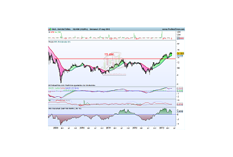 Si observamos el Macd vemos como se está produciendo una divergencia bajista. El precio ha seguido subiendo mientras que en el Macd no ha ocurrido lo mismo aunque las dos líneas del Macd aún no se han cruzado. Además la fortaleza de Gas Natural frente al S&P 500 según el RSc Mandsfield se ha visto mermada con respecto a la que presentaba en el mes de febrero aunque, aún así, sigue siendo elevada.