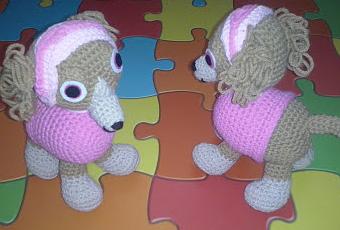 Últimamente a Irene y a Evelyn les está gustando mucho la patrulla canina y de entre todos los personajes, la que más Skye, aunque ahora, "la nueva" Everest está ganando adeptos. Hace tiempo que tenía yo ganas de probar a hacer estos muñequitos de croché de nombres casi impronunciables, así que...