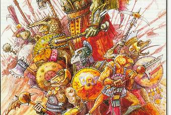 Una imagen curiosa para empezar el día(Y ahora que lo veo,el mes).Esta sacada del Warhammer Armies, del año 1988(WFB 3ª) y es obra del genial John Blanche.Estos son los Slann,que son los antepasados directos de los Hombres Lagarto de ahora.En aquellos años no había la división que se puso en 5ª de Slann,Eslizones,Saurios y Kroxigores.Los Slann eran una raza homogénea,parecida a una raza de batracios humanoides.Tenían su equivalente en W40K,en el RT(Y solo en el RT).Muy diferentes de lo que puede ver a día de hoy.
