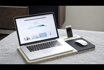 “Slate Mobile AirDesk” es un gran accesorio para trabajar en su ordenador portátil fuera del escritorio. Es ultraligero construido de un bloque de bambú de alta calidad, que está perforado para mejorar la circulación de aire para que el portátil no se recaliente. También cuenta con un pad para el mouse/ratón y un dock para colocar el smartphone o la mini tablet con un orificio para pasar el cable.