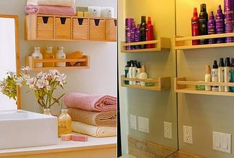 Hoy te muestro dos I.D.E.A´s para decorar tu baño.La meta es conseguir estanterías para el aseo sin que realmente sean estanterías, con especieros y estantes para cuadros cuyos precios no sobrepasan los 8 euros:- Estante especiero BekvämIdeal para liberar espacio en la encimera del aseo y tener todo bien ordenado. Tendrás todas tus cremas y productos a mano. El estante es de abedul macizo, en color abedul (puedes pintarlo del color que desees con pintura para madera). Sus medidas son: fondo 10cm, altura 9cm y ancho 40cm.