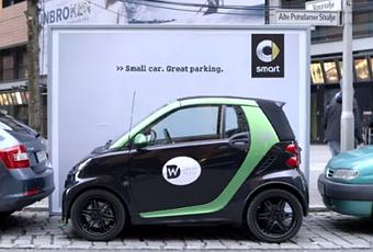 El Smart Fortwo es el coche perfecto para la ciudad ya que su reducido tamaño te permite aparcarlo en lugares reducidos. Para comunicar este beneficio, los chicos de la agencia BBDO Dusseldorf (Alemania) propusieron convertir los propios Smart aparcados en la ciudad en vallas publicitarias efímeras.