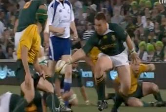 Curiosa jugada del ultimo partido Sudafrica vs Australia, en un ataque de los springboks Smit recibe un pase desde el suelo y ...