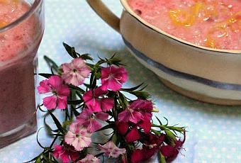Procedimiento: Macerar las frutillas con una cucharada de azúcar y el jugo de naranja por 1 hora mínimo. En el vaso del mixer o licuadora poner las frutillas maceradas, las bananas cortadas en rodajas, la miel y el yogurt natural (algunos prefieren hacerlos con yogurt griego, que ya viene endulzado).