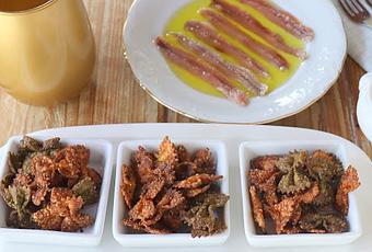 Puedes hacer estos crujientes aperitivos, con pajaritas, mariposas, farfalle, espirales, fusilli, o cualquier pasta corta de tu gusto. Interesan las más pequeñas para que nos quede un aperitivo en formato bocado.
