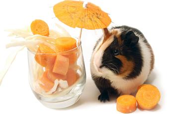 El snack dentro de la dietaAl snack se le llama alimento complementario porque su función es ser un elemento más, añadido a la pirámide alimentaria, en este caso, de las cobayas. La dieta equilibrada de la cobaya consiste en un 60% de heno completo, un 20% de pienso completo y un 20% de frutas y verduras (un porcentaje éste más alto en cobayas que en otros roedores debido a que necesitan mucha vitamina C, porque su cuerpo no la produce, como el pimiento).