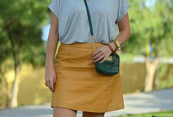 Dicho esto, en el look de hoy les enseño dos de las últimas compras que más he usado desde que tengo y una prenda que me había puesto solo en dos ocasiones y a la que pienso dar mucho uso esta temporada ya que está de plena tendencia (la vieron hace ya tres años en este post) Un outfit muy sencillo con el detalle del estampado de las bailarinas que me sirvió para jugar con los tonos del resto de prendas y del bolso. Al final resultó un conjunto de lo más otoñal (al menos en cuanto a los colores que lo forman, porque lo de ir sin medias y en camiseta a estas alturas del año, ya sé que muy otoñal no es). Today a new outfit wearing some of my last purchases, like the snake print flats and this old Topshop leather skirt.