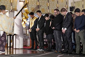 El talento de SNAKE EYES recibió una bendición tradicional en el Templo Hie-Jinja antes de iniciar la producción en Tokyo.