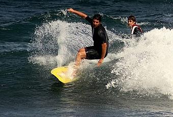 A continuación, "Serpiente" Plissken demostrando que se puede hacer surf vestido, sin remar, con pistolas y...un parche en el ojo.Saludos.