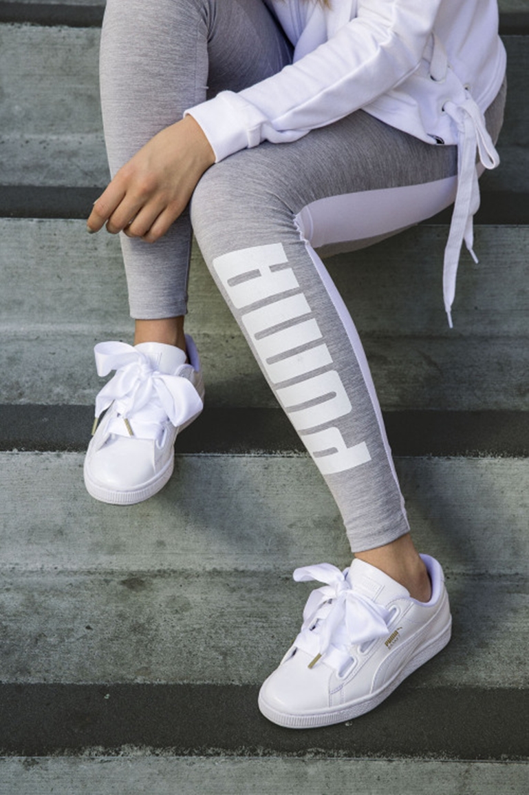 Ahora le toca el turno a otra zapatilla, acompañada esta vez por charol y lazadas de seda, con un toque más lady, se trata de las Puma Basket Heart, un hit de las pistas de baloncesto en los años 70 de Nueva York. Disponibles en blanco, negro de charol, denim y en pastel satinado. Yo sin duda me declaro fan incondicional de las blancas ¿y vosotras?