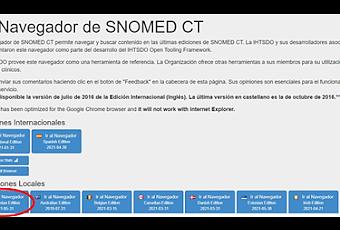El navegador de SNOMED CT permite explorar la terminología completa y buscar contenido en las distintas ediciones tanto internacionales como locales.